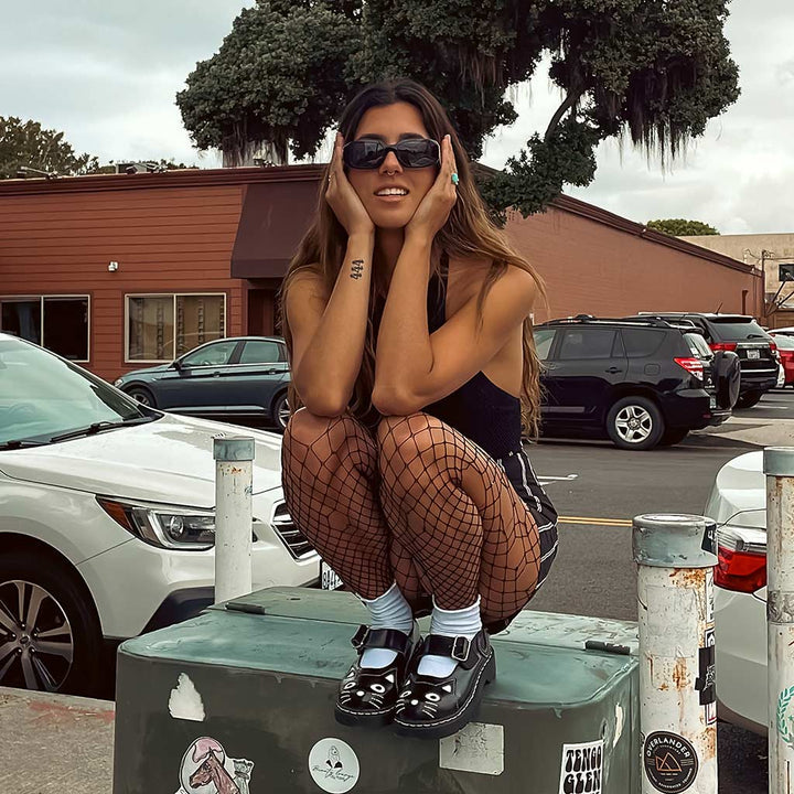 Elizabeth C."Je reçois des compliments à chaque fois que je les porte. Le visage de chat est adorable, mais suffisamment discret pour les assortir avec des tenues noires. Elles sont aussi étonnamment confortables, je les ai portées toute la journée sans problème."